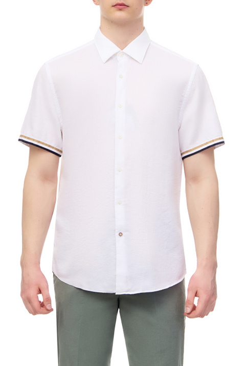 BOSS мужская рубашка из хлопка и льна белый цвет, размер 40, 41, 42, 43