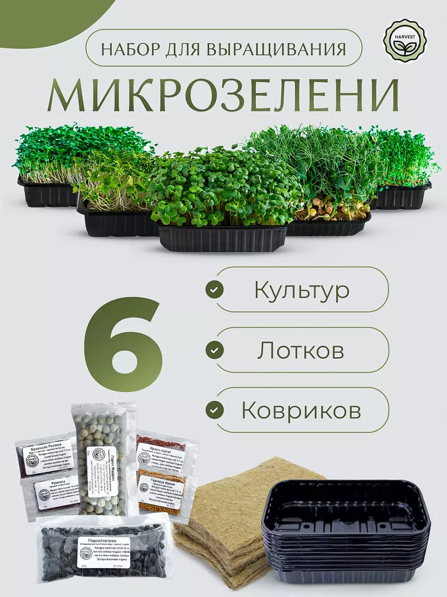 Наборы для выращивания микрозелени с инструкцией, 11 видов (горох