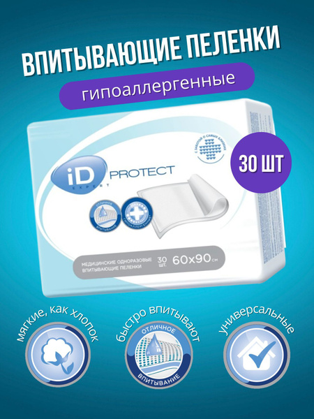 Пеленки впитывающие ID Protect 60х90 см 30 штук купить в СПб, цена