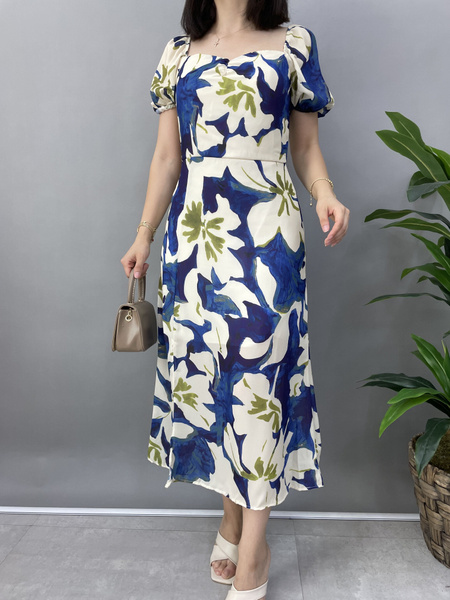 Платье с вырезом в форме сердца, рукавом-фонариком с цветочным принтом